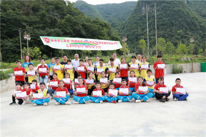 2018年是安惠愛心基金“西南助學(xué) 陽光沐浴”計劃實施的第五年。每年安惠江海志愿者們都會來到貴州省獨(dú)山縣麻尾鎮(zhèn)開展愛心助學(xué)活動,與這里的師生們相聚。7月8-12日,志愿者們帶著6名南通的孩子們再次踏上這片土地,和當(dāng)?shù)貙W(xué)生互動、交流、學(xué)習(xí),一起度過一段非常有意義的快樂時光。安惠公司副董事長陸漢萍也專程來到麻尾,看望一直牽掛著的學(xué)生們,走訪受資助的學(xué)生,并實地了解空氣能熱水器的使用情況。